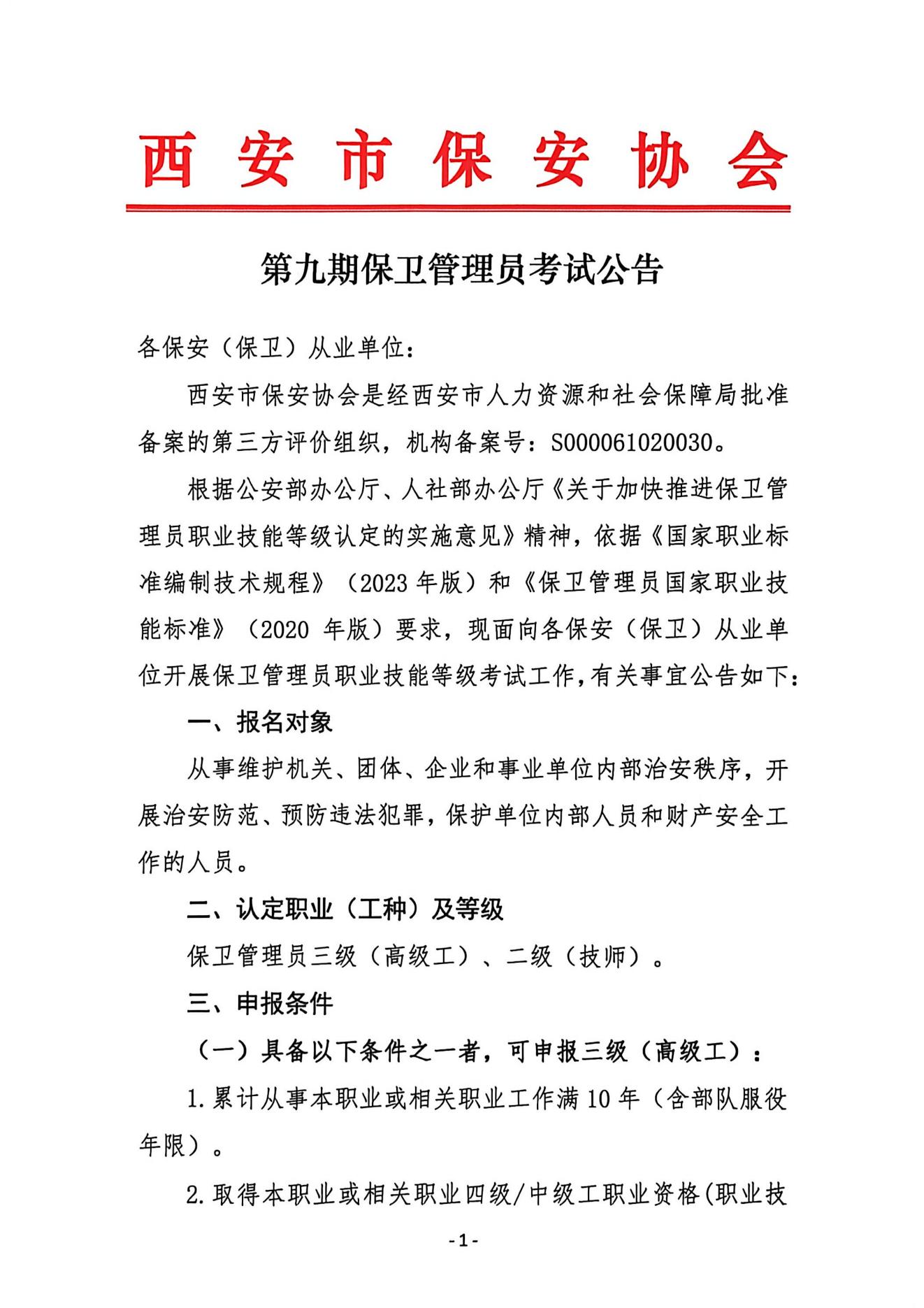 第九期保卫管理员考试公告